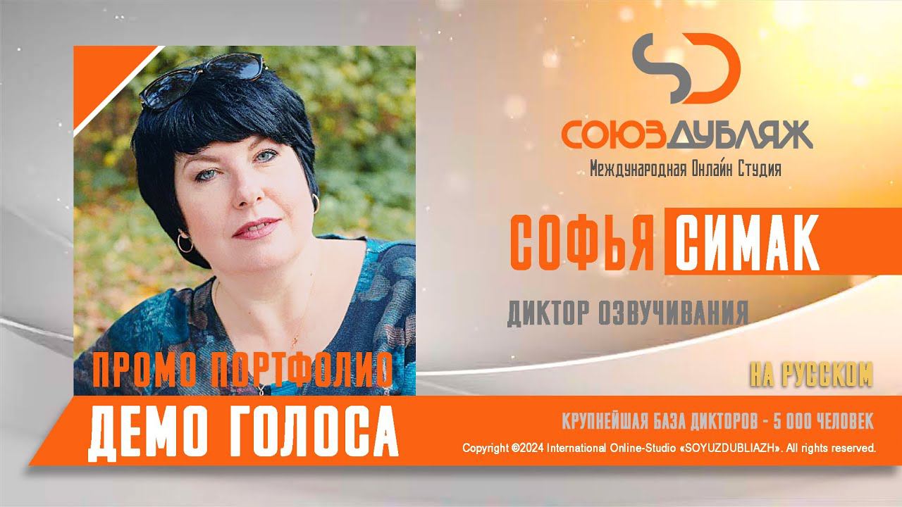 #СоюзДубляж #БазаДикторов #Озвучка ✔️Софья Симак, диктор озвучивания. Международная Онлайн-Студия "СОЮЗДУБЛЯЖ" - профессиональная озвучка и дубляж. ▪️Рабочая группа в Телеграм: https://t.me/soyuzdubliazh ▪️Контакт для связи: https://t.me/SoyuzAdmin ▪️Подпишись:https://www.youtube.com/c/SOYUZDUBLIAZH ▪️Сайт: https://www.soyuzdubliazh.com/ Лучшие голоса для вашей аудиорекламы и видеороликов. База дикторов - 5 000 человек, профессионального уровня на ENG| FR| TR| RU| ISR| AZ| UA| KZ| UZ| языках. Мужские и Женские топовые голоса для озвучки любых проектов, таких как: Рекламы, Презентации, Фильмы, Сериалы, Игры, Мультфильмы, ТВ Шоу, Аудио-видео визитки. ✔️Сотрудничая с нами вы получаете свой проект под ключ, не выходя из дома или офиса. Наша слаженная команда из лучших дикторов, актёров озвучивания, режиссёров и звукорежиссёров в кратчайшие сроки озвучат или отдублируют ваш заказ на профессиональном уровне. Образцы работ нашего портфолио вы сможете посмотреть на канале СОЮЗДУБЛЯЖ. ВНИМАНИЕ: ✔️Мы приглашаем специалистов озвучки к сотрудничеству в нашей команде. Вы можете пройти по ссылке в наш телеграм канал и связаться с Админом для обсуждения. ✔️Всем заказчикам подобных медиа проектов по озвучки и дубляжу фильмов, сериалов, документалок обращаться непосредственно к Админу Телеграм группы СОЮЗДУБЛЯЖ, пройдя по ссылке: Проходи по ссылке: https://t.me/soyuzdubliazh International Online-Studio SOYUZDUDLIAZH presents a highly professional approach in voice-over and dubbing. ▪️Our working group https://t.me/soyuzdubliazh ▪️Chief manager https://t.me/SoyuzAdmin ▪️Follow https://www.youtube.com/c/SOYUZDUDLIAZH ▪️Web: https://www.soyuzdubliazh.com/ We offer You the best Voices for your Audio commercials and Video`s. Our Database contains over 5 000 voices of native speakers and high-class foreign language specialists in ENG| FR| TR| RU| ISR| AZ| UA| KZ| UZ|. Male & Female top level voices for all the variety of dubbing projects such as commercials, presentations, movies, TV-series, video and computer games, cartoons, TV-shows, audio & video portfolio’s – all in one place. As your business partner we guarantee a turn-key project without you leaving your house or office. Our target is to make sure that the dubbing of your project is made as quick as possible by a well-coordinated and professional team of the best speakers, film and sound directors. To whom it may concern! We invite dubbing specialists to join our team. Please contact our manager on Telegram https://t.me/soyuzdubliazh