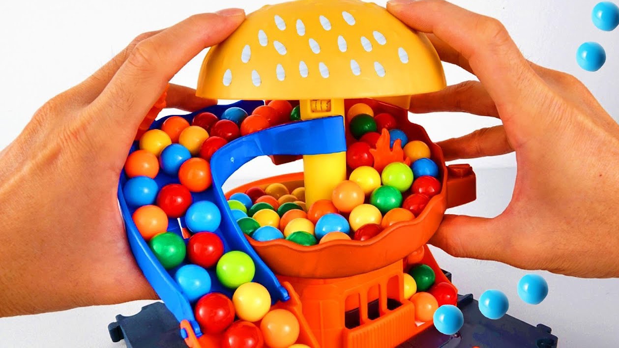 Видео для детей. Скатываем шарики через бургерный лабиринт. Детям