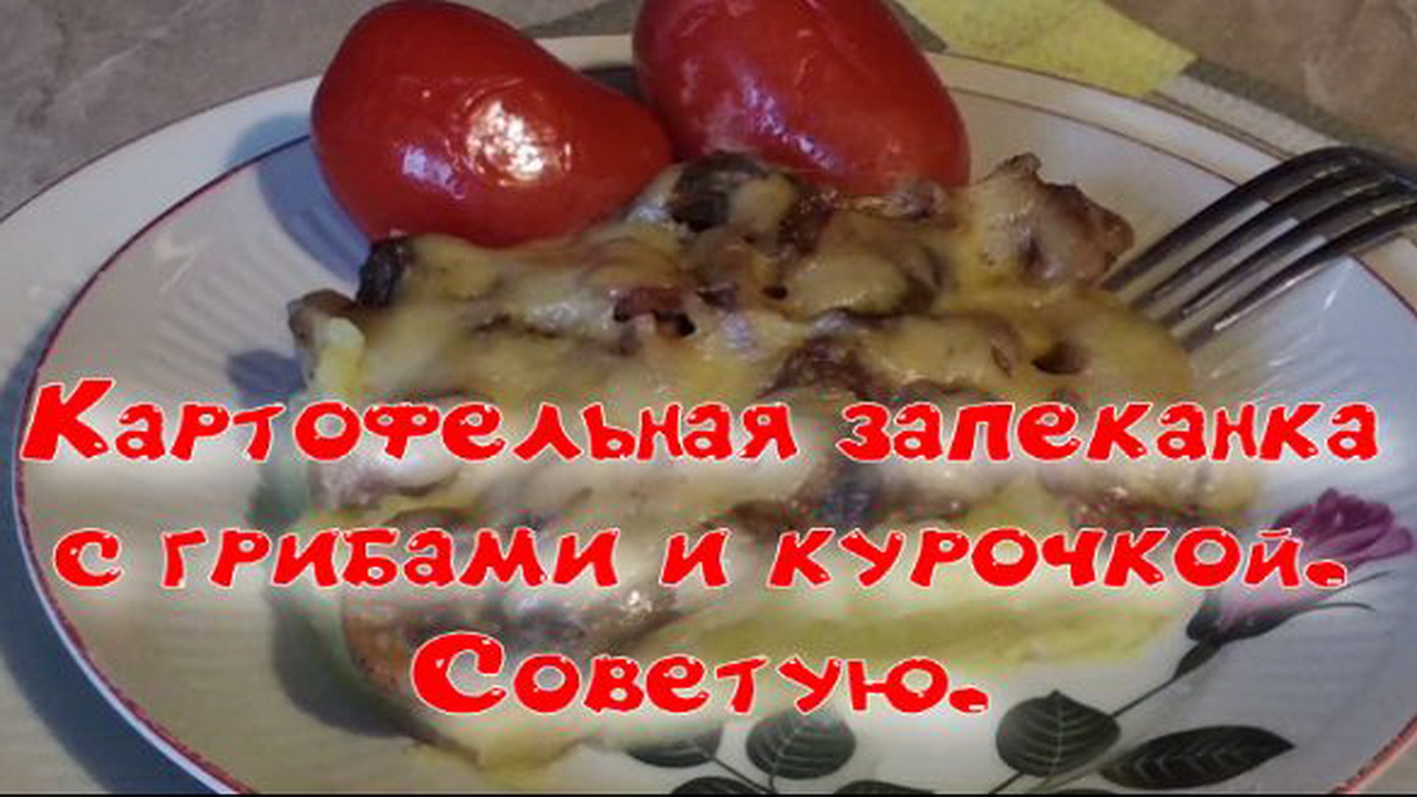 Картофельная запеканка с грибами и курочкой.
