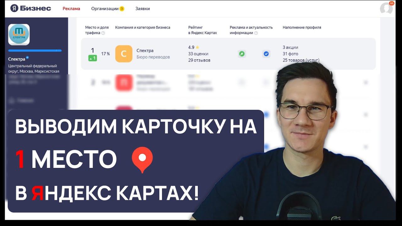 Это вторая часть видео по продвижению на картах в Яндекс. Здесь расскажу, как мы стали первыми, какие шаги предприняли, чтобы с 8 места и 5% трафика подняться на лидирующую позицию с 17% трафика, увеличив его на 240%. Нужно продвижении вашей организации? Пишите: https://t.me/+nfIdttKM9LtiZTVi Таймкоды: 00:00 Введение 00:11 Анонс 1 части видео 01:22 Цель проекта 01:37 Результат работы 02:35 Проработка блока с товарами и услугами 03:30 Проработка блока с подробностями о организации