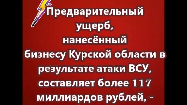 Предварительный ущерб, нанесённый бизнесу Курской области в результате атаки Вооружённых сил Украины, составляет более 117 миллиардов рублей