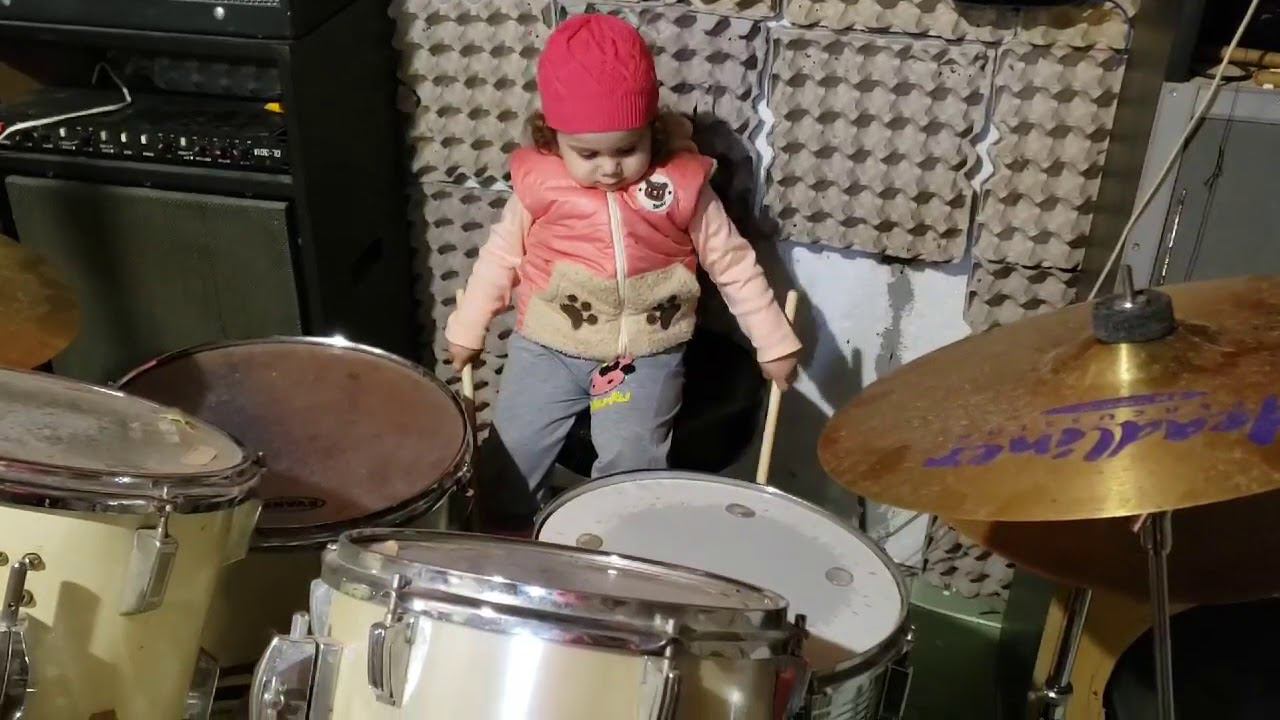 Начинающий музыкант :) :) Впервые увидела барабаны! И сразу - в импровизацию :)