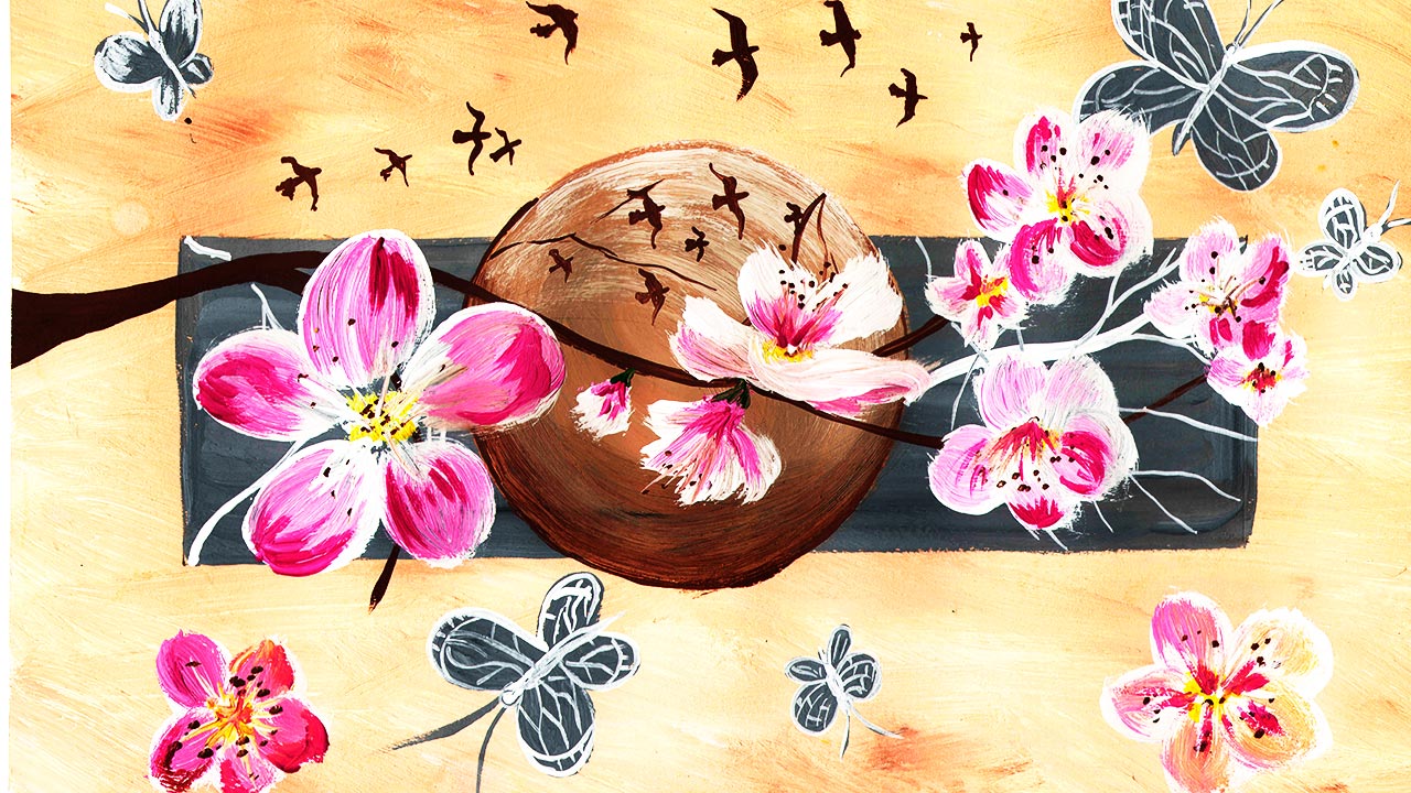 Рисуем интерьерную картину. Рисуем ветку сакуры. Правополушарное рисование.
