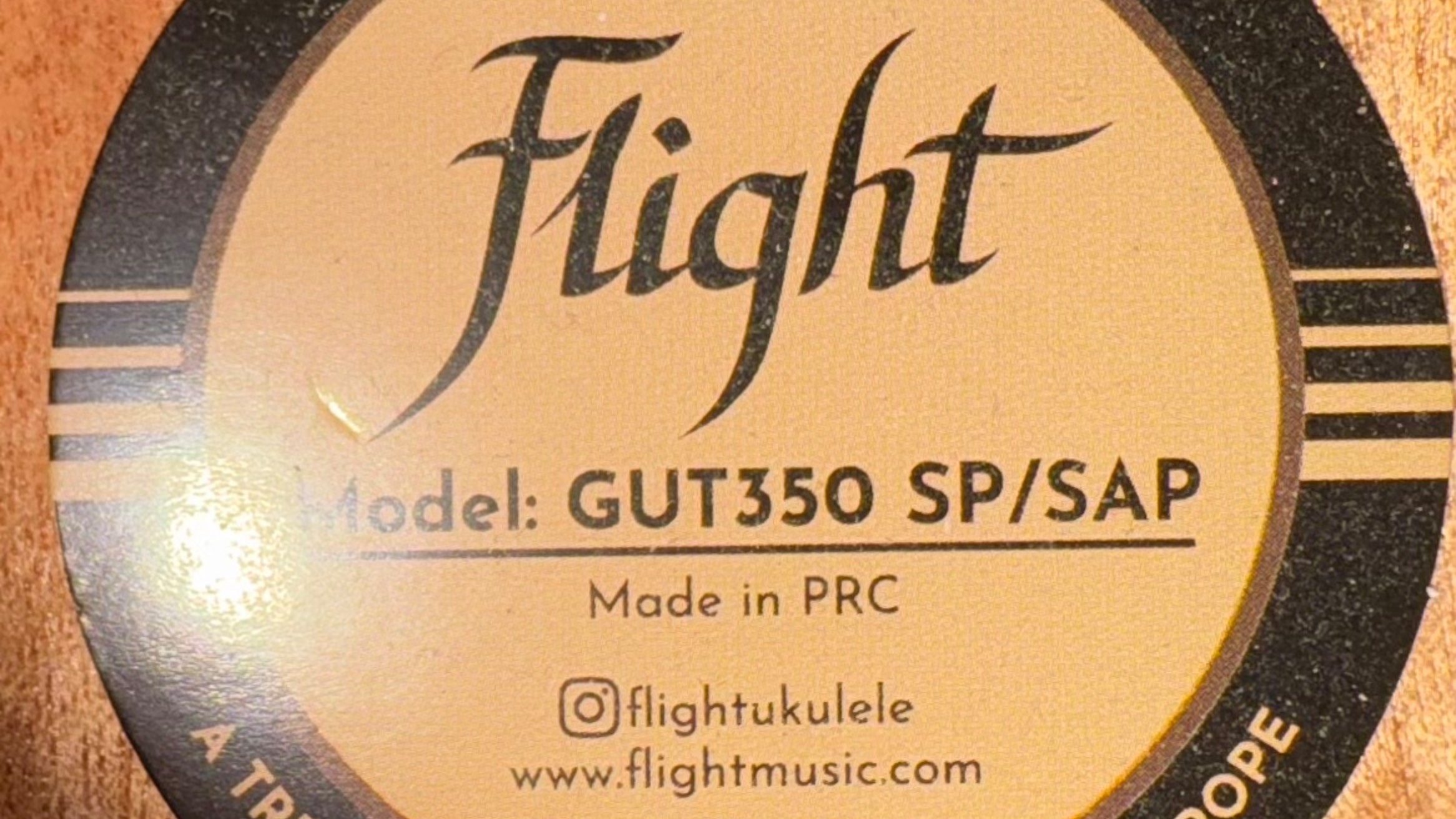 ГитаЛеле Flight GUT350 SP/SAP Тип: гиталеле Верхняя дека: ель Задняя дека и обечайка: сапеле Бридж: грецкий орех Гриф: окоуме Накладка: грецкий орех Количество ладов: 18 Верхний и нижний порожки: кость Ширина верхнего порожка: 48 мм Строй: ADGCEA