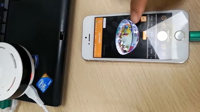 Камера диаметром 5 см , и толщиной 2 см. Имеет разрешение 1.3 MP. Подключается через WI-FI