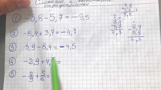 Сложение и вычитание отрицательных чисел. Математика за 6 класс. Дроби с разными знаками. Обучает уч