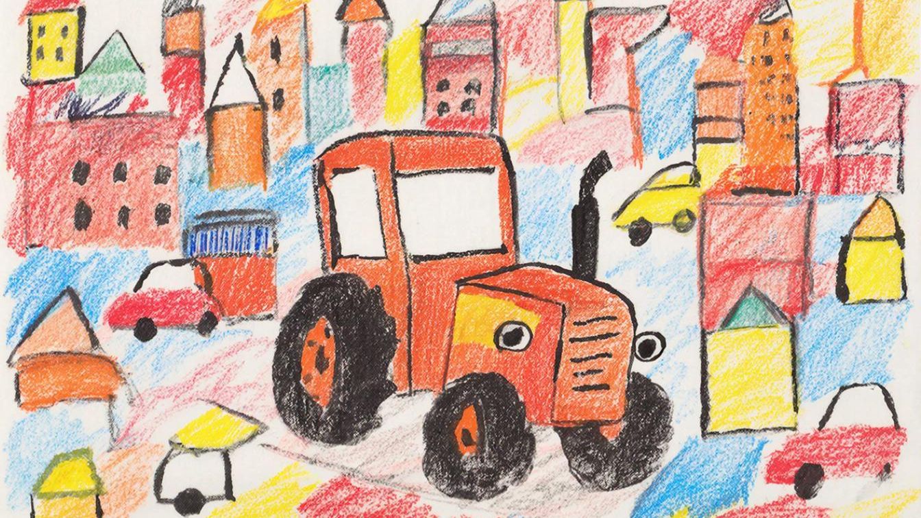 Трактор едет в городе машинок. Мультфильмы для детей.