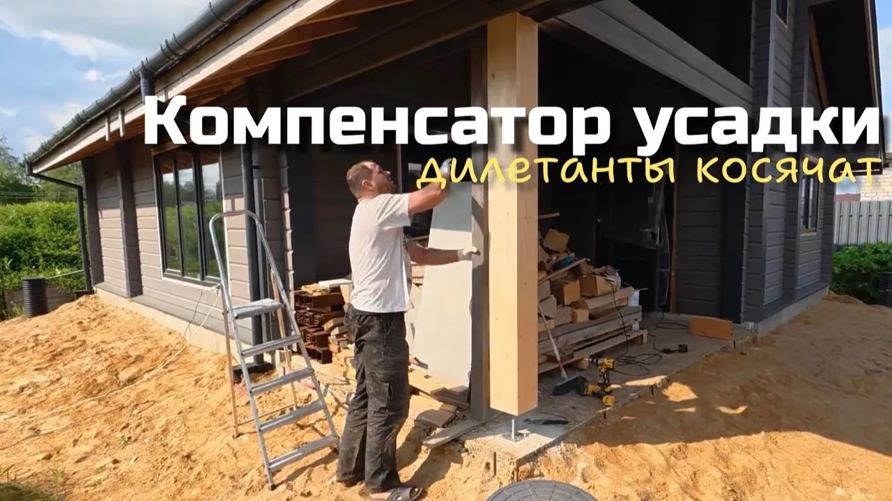 Финал монтажа домокомплекта. Компенсатор усадки для столба. Дилетанты косячат