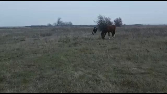 Выпас кобылы с жеребенком