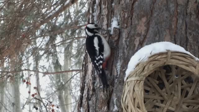 Лесные птицы на кормушке в метель