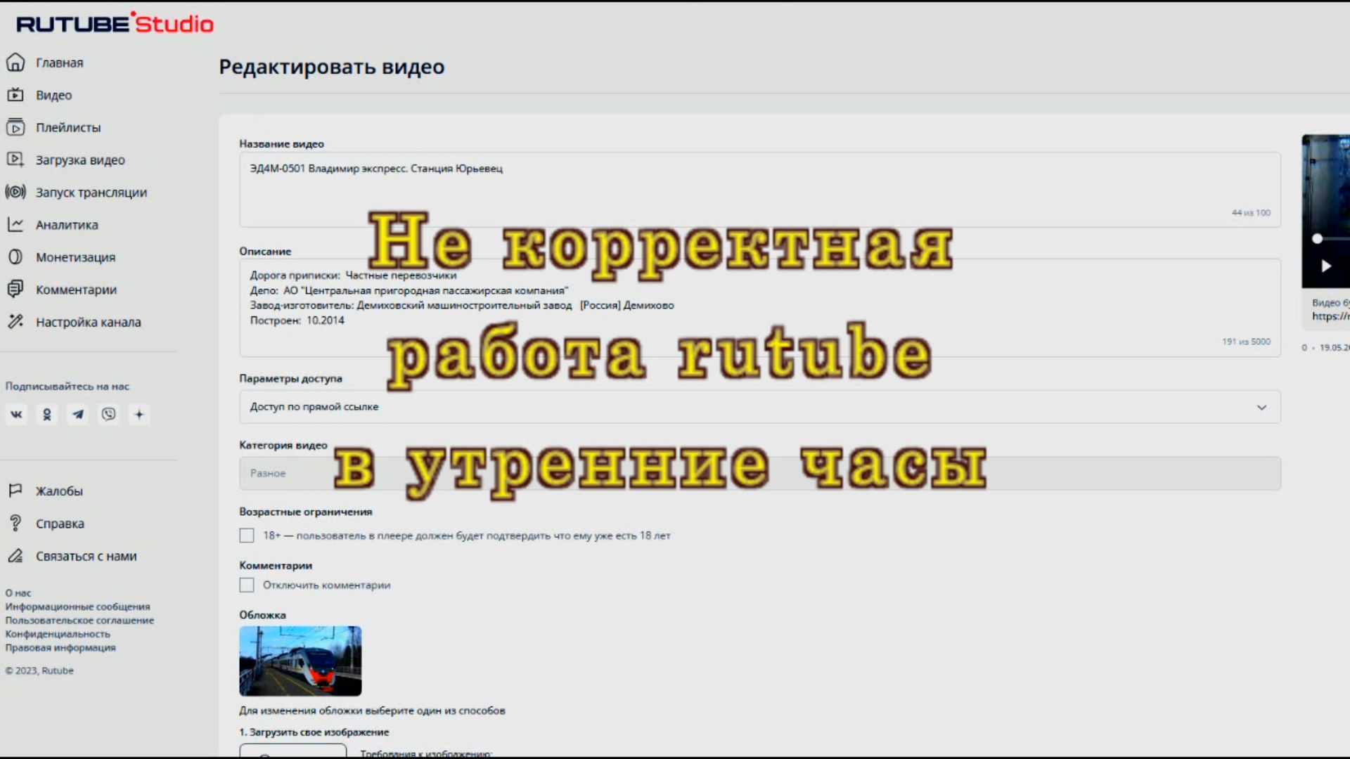 Не корректная работа rutube в утренние часы