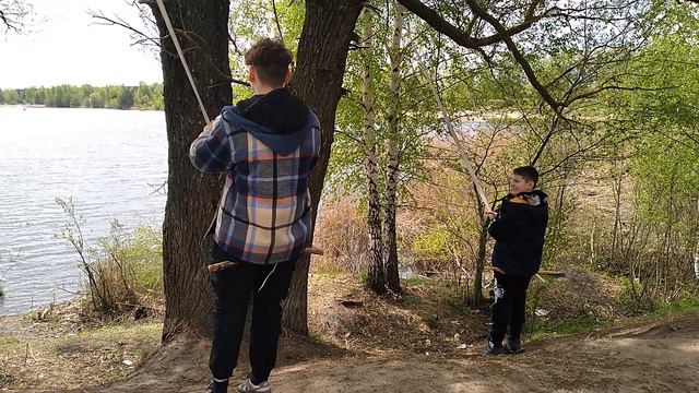 Супер полетали на тарзанках на дереве у водоёма Байкал