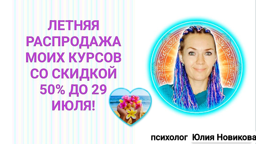 ✅ Летняя распродажа моих курсов со скидкой 50% 🎁 с 26 по 29 июля! ✅ Какие курсы онлайн в записи: 1. Восстановление после абьюза 2. Личные границы, прокачка личных границ 3. Исцеление внутреннего ребёнка 4. Программа самоуничтожения: исцеление 5. Твоя сила в кризис: где взять энергию? 6. Токсичная мать: исцеление души 7. Вина, избавление от вины 8. Прощение обид, прощение себя 9. Защита от энергетических вампиров 10. Страх: убираем страх и тревогу 11. Злость: убираем злость и ненависть 12. Токсичная свекровь: решаем проблемы за 7 дней 13. Восстановление жизненной энергии 14. Курс "Прими и полюби себя" ✅ Вы можете заниматься из любой точки мира в удобное время. Мой магазин принимает оплаты из-за границы, с зарубежных карт. После оплаты, вам откроется доступ к курсу и придёт чек на почту. Доступ к курсам бессрочный! ✅ Распродажа 50% действует до 29 июля. ✅ Купить курсы со скидкой 50% на моём сайте: https://svekrov-nevestka.ru/ 🧚♂️ По техническим вопросам пишите в Ватсап: https://wa.me/message/WF642UA5NAT3P1 ✅ Раньше курсы были в записи по закрытой ссылке на ютубе, теперь залила их ещё на гугл диск, т.к. ютуб у многих глючит👆.