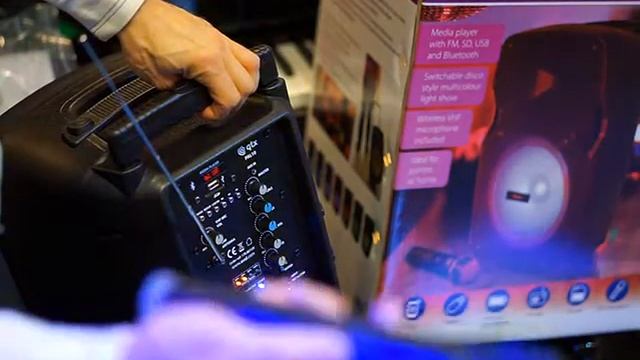 140W blåtandshögtalare med ljus-show, trådlös mikrofon, FM-radio, USB SD mediaspelare, karaoke med eko-effekt och trådlös fjärrkontroll. REA HALVA PRISET Ord. pris: 2 995:- Ditt pris (-50%) 1498:- 1 198:- exkl. moms Delbetala från 112:-/månad eller ett år räntefritt FRI FRAKT TILL HELA SKANDINAVIEN Turn up the music with a funky Bluetooth speaker with a built in Light show. Portable with a rechargeable battery, wireless microphone and USB/SD/FM/BT player for house parties, singers and performers. Bluetooth connectivity Built in colourful LED light show USB/SD/FM/BT media player Power from mains or internal battery Wireless microphone Ideal for parties at home Power supply 13.5Vdc, 2A adaptor (included), 12Vdc or internal battery Battery - main unit Rechargeable 1800mAh Li-ion Battery operation time Up to 4 hours (2 hours with LEDs on) Output power 140W peak 35Wrms Main driver 250mmØ (10") HF driver 25mm (1") Inputs Mic / Guitar 6.3mm jack, Aux 3.5mm jack Controls Wireless Mic, Master, Treble, Bass, Mic/Gtr vol, Echo Audio source USB/SD/FM/BT media player Carrier frequency 174.1MHz Bluetooth version 2.1 LED source (each) Single RGB 3-in-one with auto patterns 490 x 300 x 250mm 5.6kg In the box PA speaker with LED lights UK/EU 13.5Vdc, 2A power adaptor 230V Handheld VHF microphone Portable PA Unit with Bluetooth® and LED FX Compact portable PA unit with sturdy moulded cabinet and trolley assembly. Powered via the supplied power adaptor, external 12Vdc or internal rechargeable battery for true portability. Built-in VHF wireless microphone system and USB/SD media player with FM tuner and Bluetooth receiver. Complete sound system for house parties, singers and performers. Built-in VHF wireless microphone system Bluetooth connectivity Internal USB/SD audio player with FM tuner Mains, DC or rechargeable operation Colourful LED light show from main speaker cone QTX. Vår största leverantör från Manchester, England. Mycket hög kvalitet. Delbetala från 112:-/månad eller ett år räntefritt FRI FRAKT TILL HELA SKANDINAVIEN BESTÄLL HÄR och se video, pdf, fler bilder: http://www.billebro.se/myshop_start.php?PRID=14646