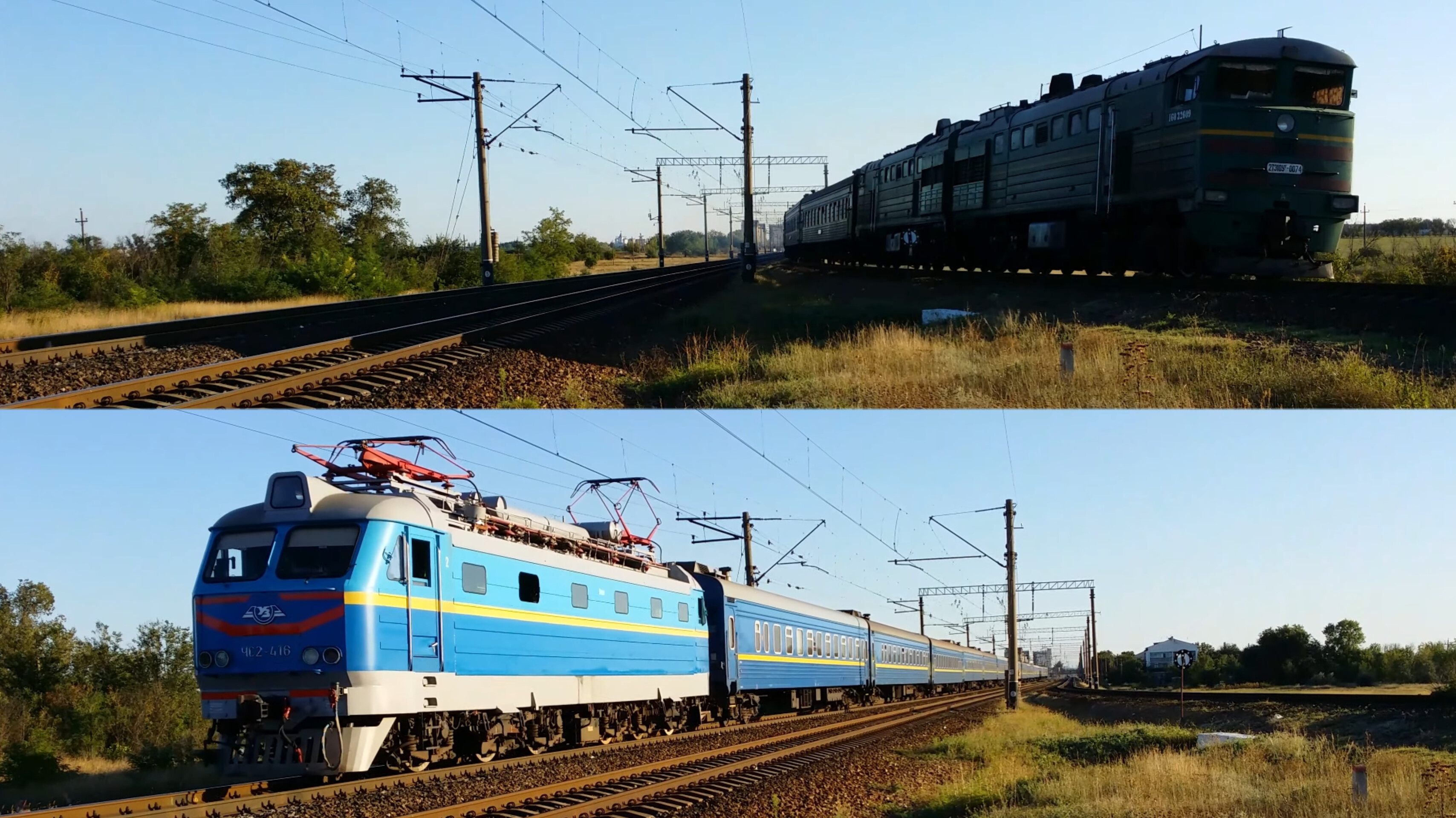30 августа 2014 года в 19:06 перегон Джанкой -Богемка/Мамут Крымская железная дорога, бывшая Приднепровская железная дорога 2ТЭ10Ут-0074 с поездом №132 Симферополь-Хмельницкий и ЧС2-416 с поездом №12 "Славутич" Симферополь-Киев