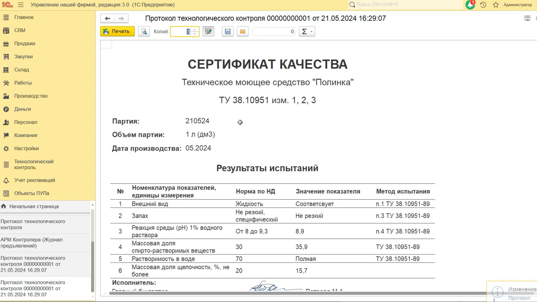 Контроль качества и ОТК в 1С, lims. Пример оцифровки сертификата качества Полинка