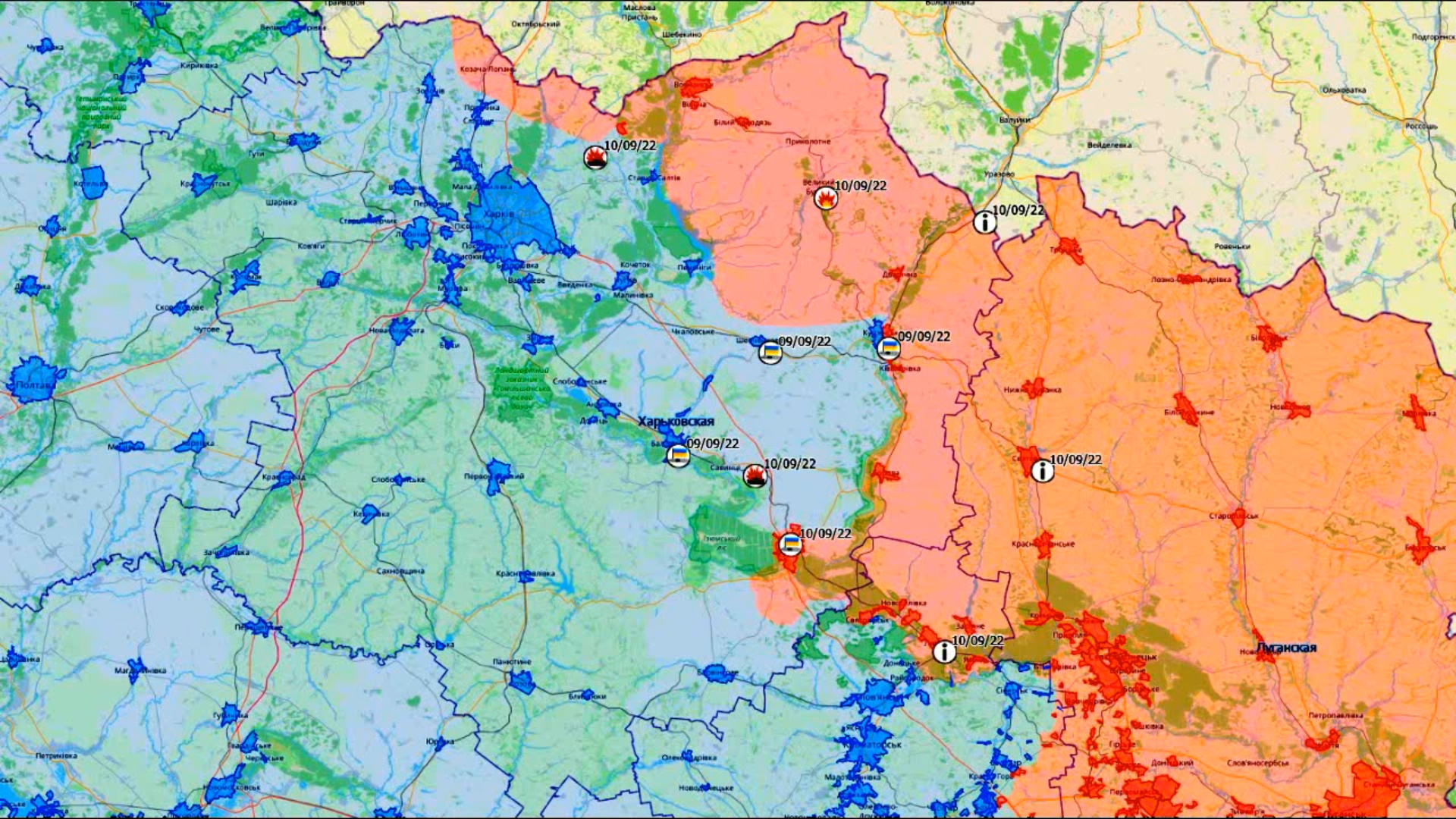 Карта боевых действий в Харьковской области с 24.02.2022 по 25.03.2023