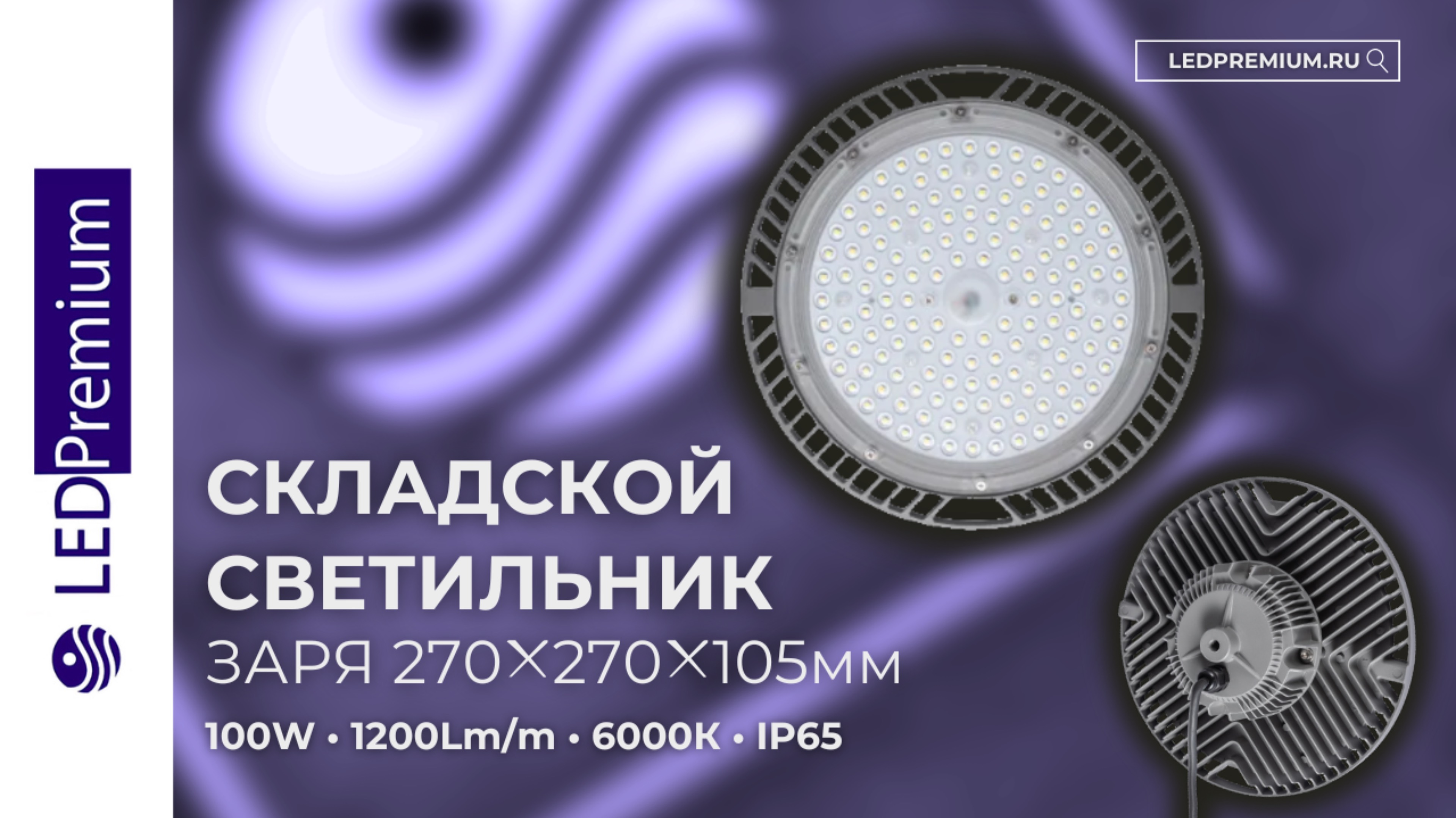 Складской светодиодный светильник ЗАРЯ LP-UFO2-100W 6000K (12000Lm, IP65)