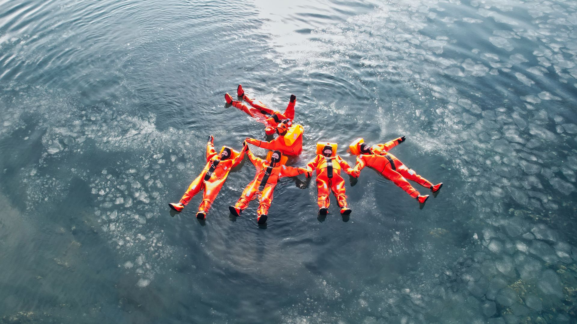 Практика расслабленного купания в ледяной воде с использованием специального гидрокостюма.