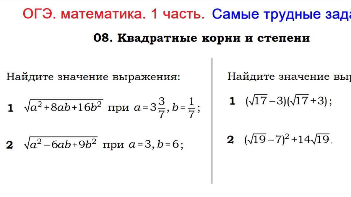ОГЭ, математика, 1 часть. Самые трудные задания