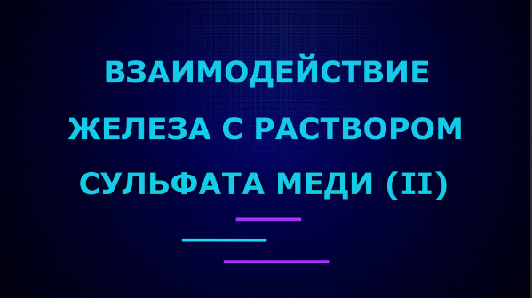 В этом видео взаимодействие железа с раствором сульфата меди (II). Ну что, похимичим? Нальём в пробирку раствор сульфата меди (II). Опустим в этот раствор железный гвоздь и немного подождём. В ходе опыта протекает реакция замещения. Через 2-3 минуты на поверхности гвоздя, которая находилась в растворе, можно увидеть розовый налёт выделившейся из раствора меди. Чтобы не пропустить новые видео, подписывайтесь на канал https://rutube.ru/channel/25427338/ Подготовку к ЕГЭ и ОГЭ по химии мы ведём в группе ВК https://vk.com/chemistry_ege_oge_eo