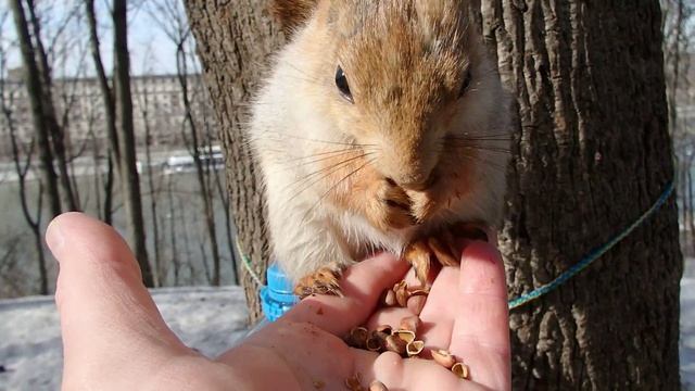 Очень голодная знакомая белка