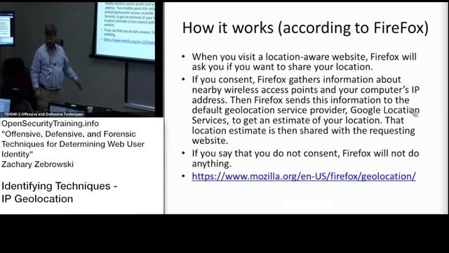 Get the class materials to follow along at http://OpenSecurityTraining.info/WebIdentity.html Follow us on Twitter for class news @OpenSecTraining. The playlist for this class is here: http://bit.ly/1cQGrDk Actual class title is: "Offensive, Defensive, and Forensic Techniques for Determining Web User Identity" but that's too long for youtube ;) This course by Zak Zebrowski looks at web users from a few different perspectives. First, we look at identifying techniques to determine web user identities from a server perspective. Second, we will look at obfuscating techniques from a user whom seeks to be anonymous. Finally, we look at forensic techniques, which, when given a hard drive or similar media, we identify users who accessed that server.