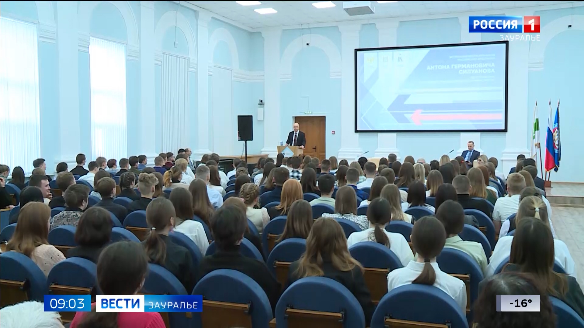 Министр финансов России Антон Силуанов встретился со студентами Курганского государственного университета. Министра представил губернатор Курганской области.