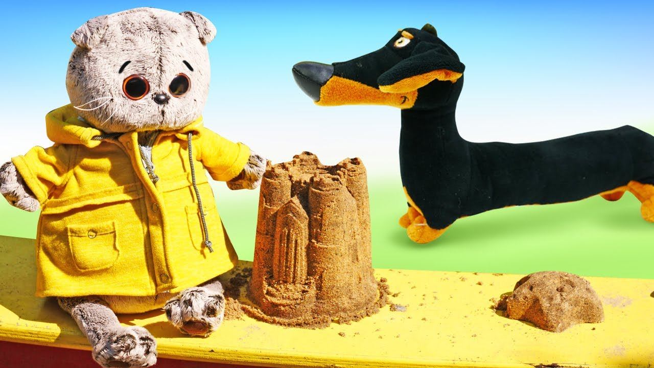 Мягкие игрушки в новом видео для детей - Кот Дымок в песочнице - Новые приключения Дымка
