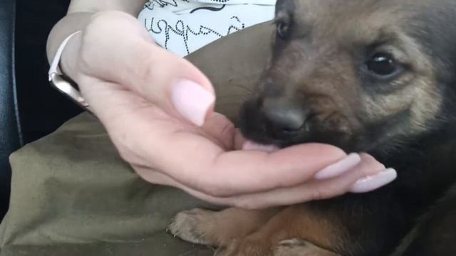 🙏Друзья, только что по дороге перед фурой успели забрать щенка. Он бежал такой малюсенький по оживл