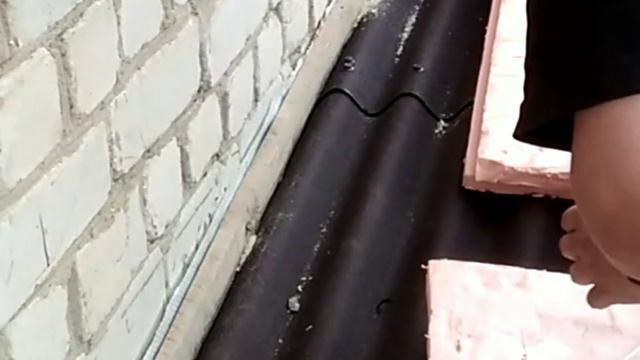 УКЛАДКА ОНДУЛИНА ПРИМЫКАНИЕ К СТЕНЕ ИЗ БЕЛОГО КИРПИЧА