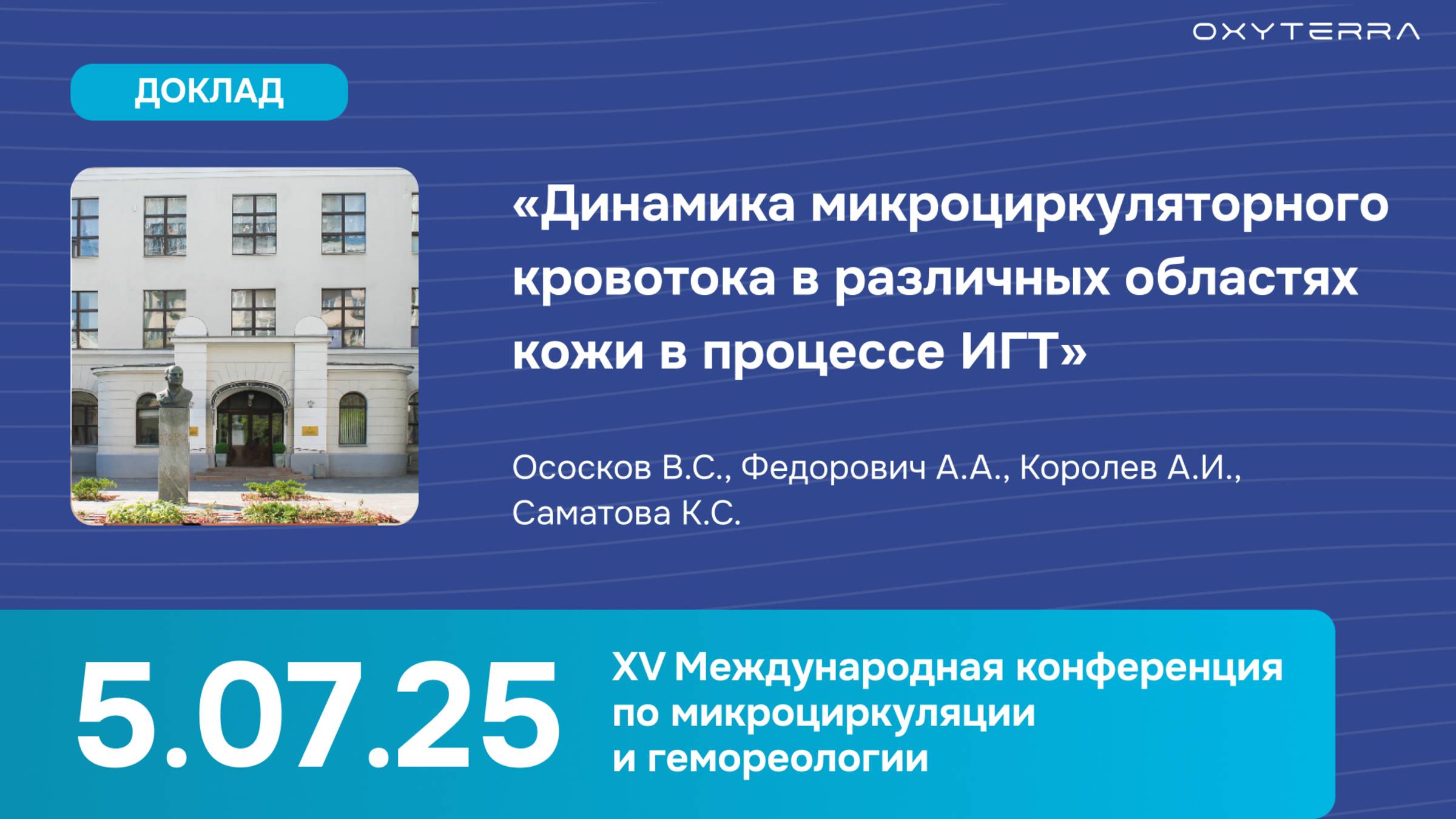 Исследователи из НМИЦ терапии и профилактической медицины Минздрава РФ и Института медико-биологических проблем РАН провели новое пилотное исследование с применением аппарата OXYTERRA, чтобы понять, как меняется микроциркуляторный кровоток в коже при интервальных гипоксических тренировках. 📋 Дизайн исследования: ◉ 4 здоровых добровольца ◉ 4 тренировки с разной гипоксической нагрузкой (от 14% до 11% кислорода) ◉ 5 циклов в каждой сессии: — 5 минут гипоксии, — 3 минуты нормоксии. ◉ Одновременная регистрация ЛДФ-сигналов (лазерная допплеровская флоуметрия — метод, позволяющий измерять кровоток в коже) со лба, предплечья и пальца 🔎 Что выяснили: ◉ Перфузия кожи (объем кровотока в тканях) увеличивалась от цикла к циклу, особенно в области лба и предплечья. ◉ Миогенные вазомоции (ритмичные сокращения мелких сосудов, регулирующих поступление крови) усиливались при более низкой концентрации кислорода, особенно на уровнях 12–11%. ◉ ЧСС (частота сердечных сокращений) сначала возрастала (компенсаторная реакция), но затем снижалась по мере адаптации: признак активации механизмов микроциркуляции. ◉ Наиболее выраженные изменения наблюдались с 3-го цикла гипоксии, то есть через 10–15 минут от начала тренировки. ❓Почему это важно: Это исследование показывает, что ИГТ запускает важные адаптационные процессы даже на микроуровне, что потенциально усиливает оздоровительный эффект. 🎯 Что это дает вам и вашим близким? Уже после нескольких таких процедур: ◉ улучшается кровоснабжение кожи и тканей, а, значит, органы и системы получают больше кислорода и питательных веществ. ◉ снижается пульс при нагрузке, т.е. организм становится выносливее. ◉ активируются защитные механизмы, это важно при восстановлении после болезней, операций, стрессов. ◉ поддерживается здоровье сосудов и капилляров, а это особенно актуально при хронических заболеваниях, для пожилых людей, и в профилактике осложнений сидячего образа жизни. Пилотное исследование прошло успешно. Впереди авторов ждет основной этап научной работы с участием большего количества людей. #микроциркуляция #восстановление #реабилитация #физиология #профилактика
