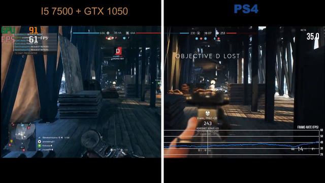 Battlefield 5 GTX 1050 VS PS4 Fps Comparison (Budget PC VS console)