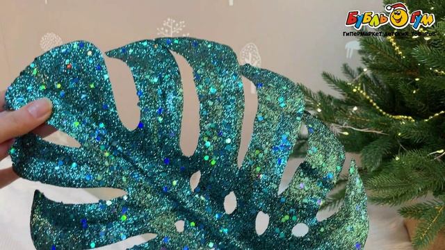 332407 Лист декоративный Монстера блестящая с монохромными пайетками зеленый 60см