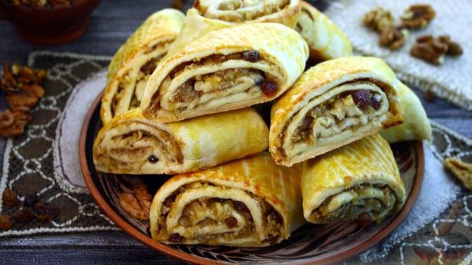 Мини-рулетики с яблоками. ГАТА С ЯБЛОКАМИ, ИЗЮМОМ И ОРЕХАМИ