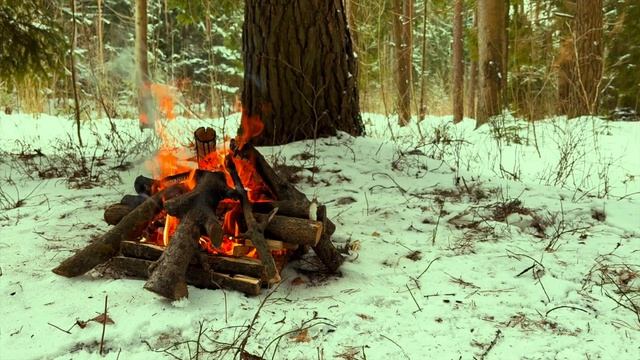 ? Зимний костер в заснеженном лесу! ❄️
