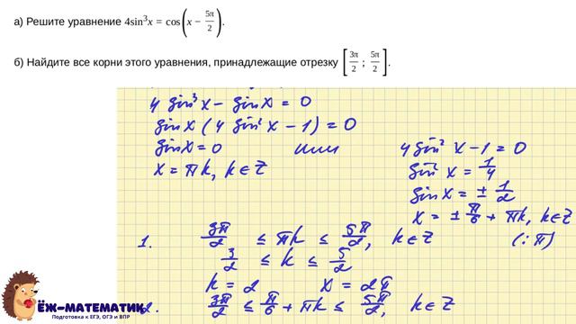 #егэ_математика_профиль #ёж_математик #егэ_2024 Курс "Уравнения" https://yozhmatematik.ru/profil/courses/equations Все курсы https://yozhmatematik.ru/profil/courses Запись на занятия https://yozhmatematik.ru/classesinfo Vk https://vk.com/yozhmatematik Telegram https://t.me/yozhMatematik Ёжику на корм https://www.donationalerts.com/r/aarunskaya Друзья!!! В этом видео вы найдете решение типовых задач №12 на ЕГЭ по математике профильного уровня в 2024 году. Все задания взяты с сайта ФИПИ http://ege.fipi.ru/os11/xmodules/qprint/index.php?theme_guid=2ef483029541e311b90c001fc68344c9&proj_guid=AC437B34557F88EA4115D2F374B0A07B Полезные ссылки: Видеокурс ЕГЭ 2024 Математика (профиль) https://www.youtube.com/playlist?list=PLi-4HlGYwFzPM6Y4NyFQwoSAGb00IT6w_ Таймкоды: 00:00 важное вступление 01:37 разложение на множители способом группировки 06:50 отбор корней с помощью двойных неравенств 13:17 отбор корней с помощью тригонометрической окружности 18:31 разложение на множители 24:03 отбор корней с помощью двойных неравенств 27:26 отбор корней с помощью тригонометрической окружности 31:00 замена переменной, пример 1 36:36 замена переменной, пример 2 42:17 отбор корней на ОДЗ 46:33 однородные тригонометрические уравнения (деление уравнения на cosx) Если вы считаете, что Ёжик-математик делает полезное дело, ставьте лайки под видео, пишите комментарии и подписывайтесь на канал. Этим вы поспособствуете продвижению канала. Всем удачи на экзаменах!!!
