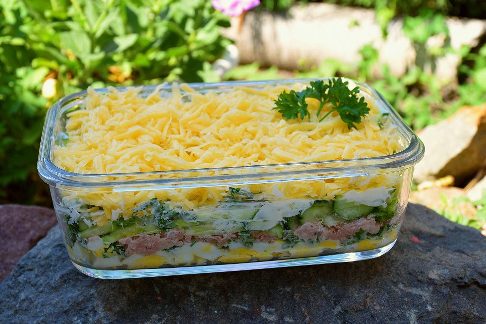 Для приготовления салата потребуется: 4 яйца, баночка консервированного тунца - 180 гр, 2 огурца, 150 гр. сыра, пучок петрушки, майонез. Важно! Соль в салат не добавляйте, иначе пересолите салат. ПОДПИСЫВАЙТЕСЬ НА КАНАЛ "Лучшие РЕЦЕПТЫ", СТАВЬТЕ ЛАЙКИ! Так вы никогда не пропустите новые видео с моего канала.