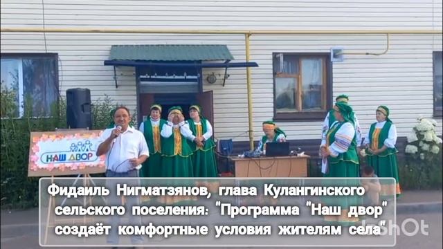 В Куланге во дворе двухэтажного дома состоялся вечер отдыха «Мы желаем вам счастья». На вечерний праздник собрались не только жители этого дома, но и односельчане, проживающие в частных домах, жители соседнего села Беляева. Среди них были и дети, и молодежь. Как отметила ведущий вечера отдыха, библиотекарь села Лилия Федотва, эту встречу организовали в рамках республиканских программ «Лето в Татарстане», «Наш двор», 80-летия Великой Победы и Года защитника Отечества. Заместитель секретаря местного отделения партии «Единая Россия» Рамис Хаялиев на встрече с сельчанами рассказал о сути этих программ, о деятельности в районе. Как отметил глава Кулангинского сельского поселения Фидаиль Нигматзянов, в этом доме по государственной программе выполнен капитальный ремонт, территория заасфальтирована, есть детская площадка. Жильцы дома вспомнили, какими были их двор и дом 30, 20 лет назад. В те годы в нем не было никаких удобств. А сейчас подведен водопровод, работает канализация, есть все удобства, и крыша не протекает. На встрече выступил народный ансамбль «Радуга» из Куланги, участники художественной самодеятельности села, были организованы игры.