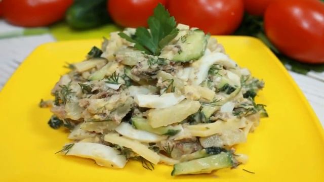 Салат №1: Огурец свежий - 2 шт. колбаса сервелат - 100 г фасоль консервированная - 100 г зубчик чеснока майонез - 2 ст.л. Легкий в приготовлении, простой Салат. Готовлю такой, когда нужно быстро и сытно накормить гостей. Салат вкусный, его не сложно приготовить, он отлично подойдет и к празднику и к будничному столу. Салат №2: яйца вареные - 3 шт. вареный картофель - 1-2 шт. сыр - 50 г. огурец свежий - 1 шт. рыбные консервы в масле - 1 банка укроп соль майонез - 1 ст. л.