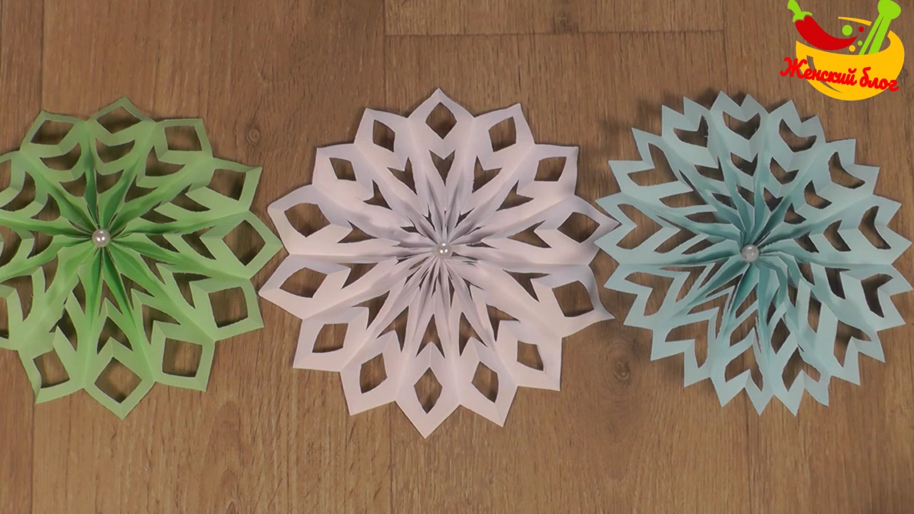 Делаем снежинки из бумаги поэтапно - 3D