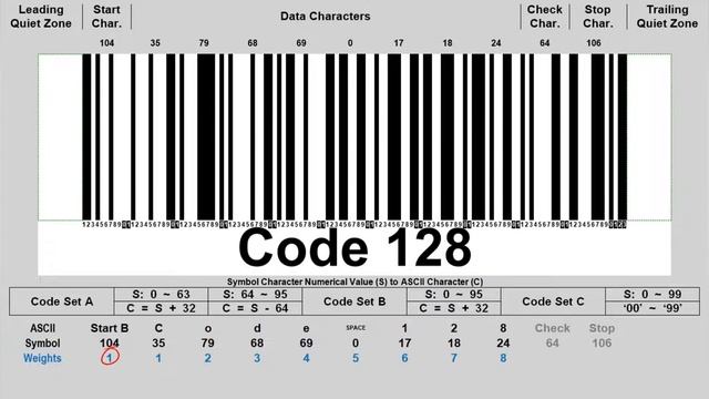 Code 128: How to calculate barcode check digit character?