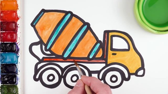 Нарисуй и раскрась машину бетоновоз \\ Рисование для мальчиков! Давайте рисовать вместе!
