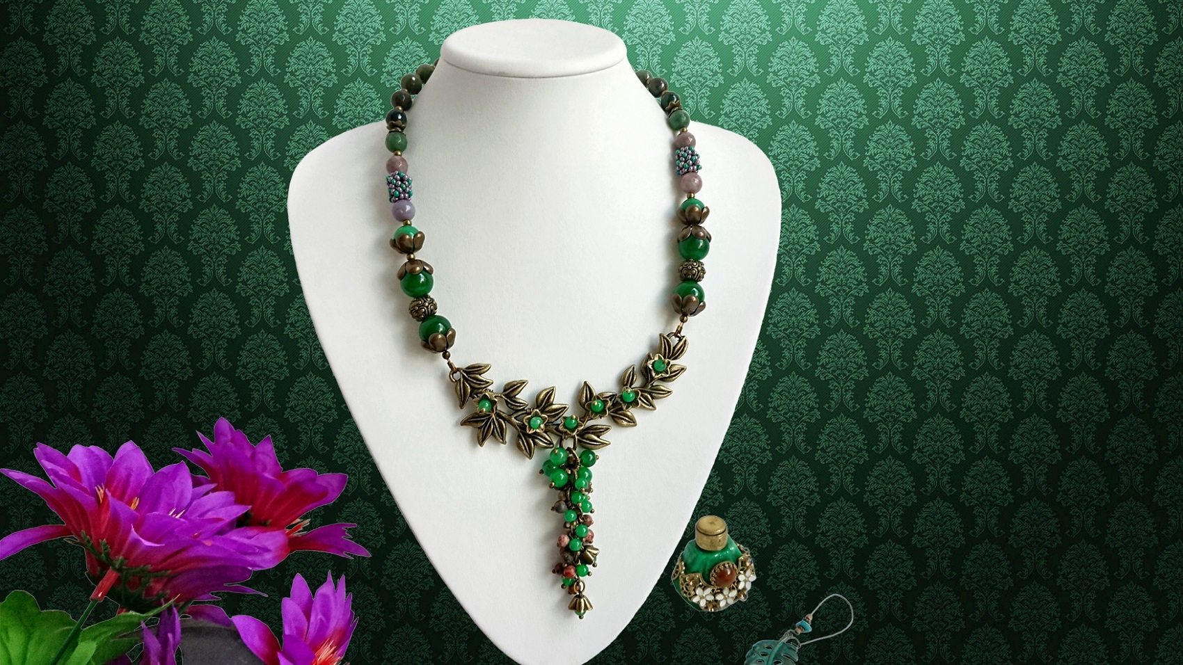 Колье своими ручками из агата и бронзовой подвески, мастер класс.