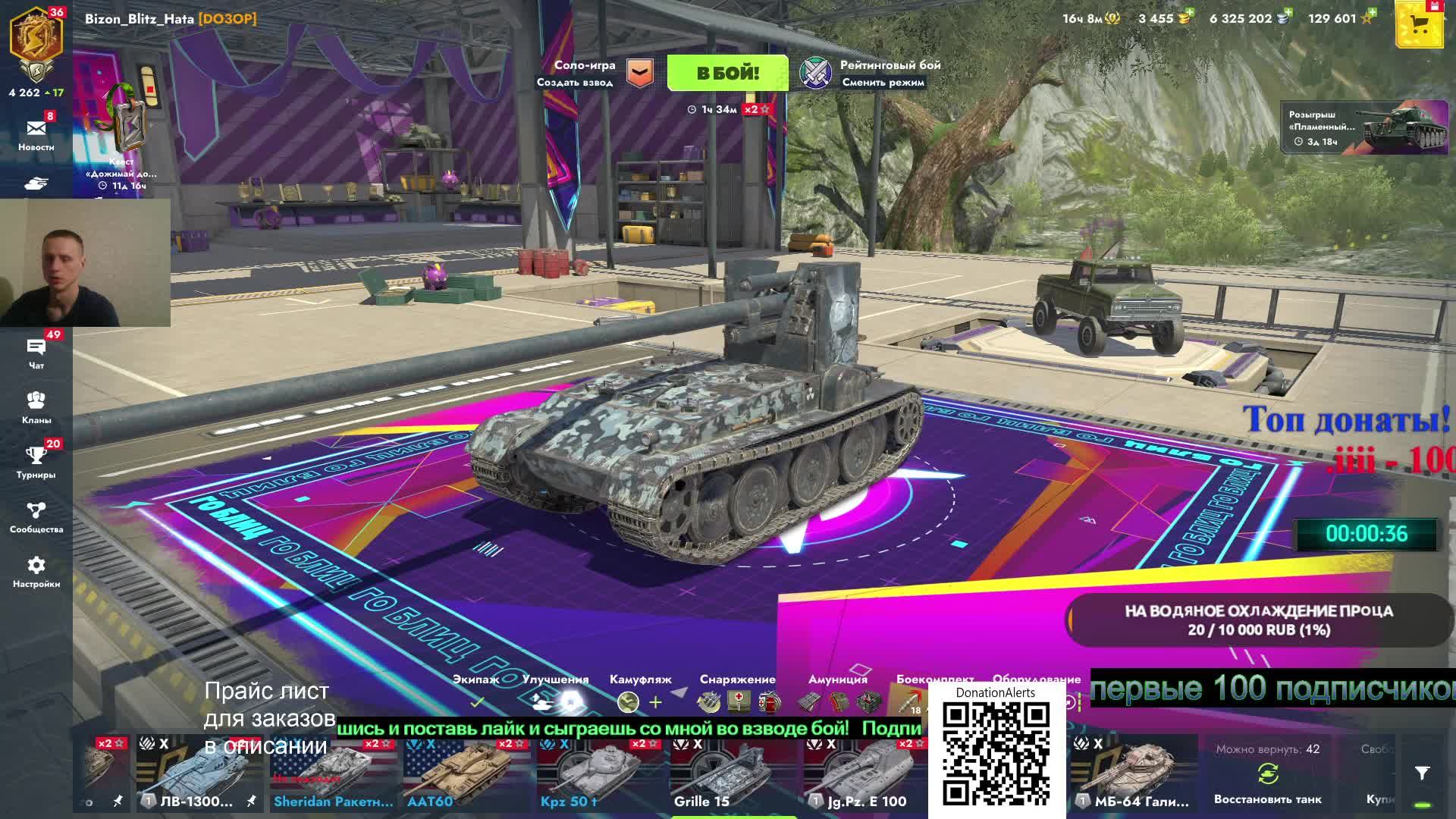 Поддержать меня донатом https://donatepay.ru/don/bizon_blitz_hata https://www.donationalerts.com/r/bizon_blitz_hata (тут же и на водяное охлаждение) Мой YouTube канал --- https://www.youtube.com/@Bizon_Blitz_Hata Подписываемся!) Мой ВКплей --- https://live.vkvideo.ru/blitz_hata Подписываемся!) А так же есть канал и на KICK ---https://kick.com/bizon-blitz-hata Подписываемся!) ПРАЙС ЛИСТ: ДЛЯ TANKS BLITZ и МИР ТАНКОВ Бой во взводе со мной - 115р чем выше сумма тем выше в очереди! НИК свой пишим правильно! Бой на ФУГАСАХ - 275 р ( на каком танке сыграть указываем! Который есть в ангаре у меня ! ) Заказ танка - 115р чем выше сумма тем выше в очереди ! Который есть в ангаре у меня ! Бой на Бабахе она же FV215B 183 - 360р , БОЙ в РБ не РАНДОМ! Чек аккаунта - 560р но я не вижу в этом никакого смысла!)) Посмотреть интересный фильм - 1150р ( название указываем, если он есть на платформе ZONA, тк кроме ютуба и ZONA нет у меня больше каких либо платформ!!! ДЛЯ DOTA 2 В ТУРБО РЕЖИМ!!! Взять героя на ваш выбор если его не забанят - 250р (Кроме INVOKER и MEPPO) Сыграть со мной в пати 1 катку - 250р