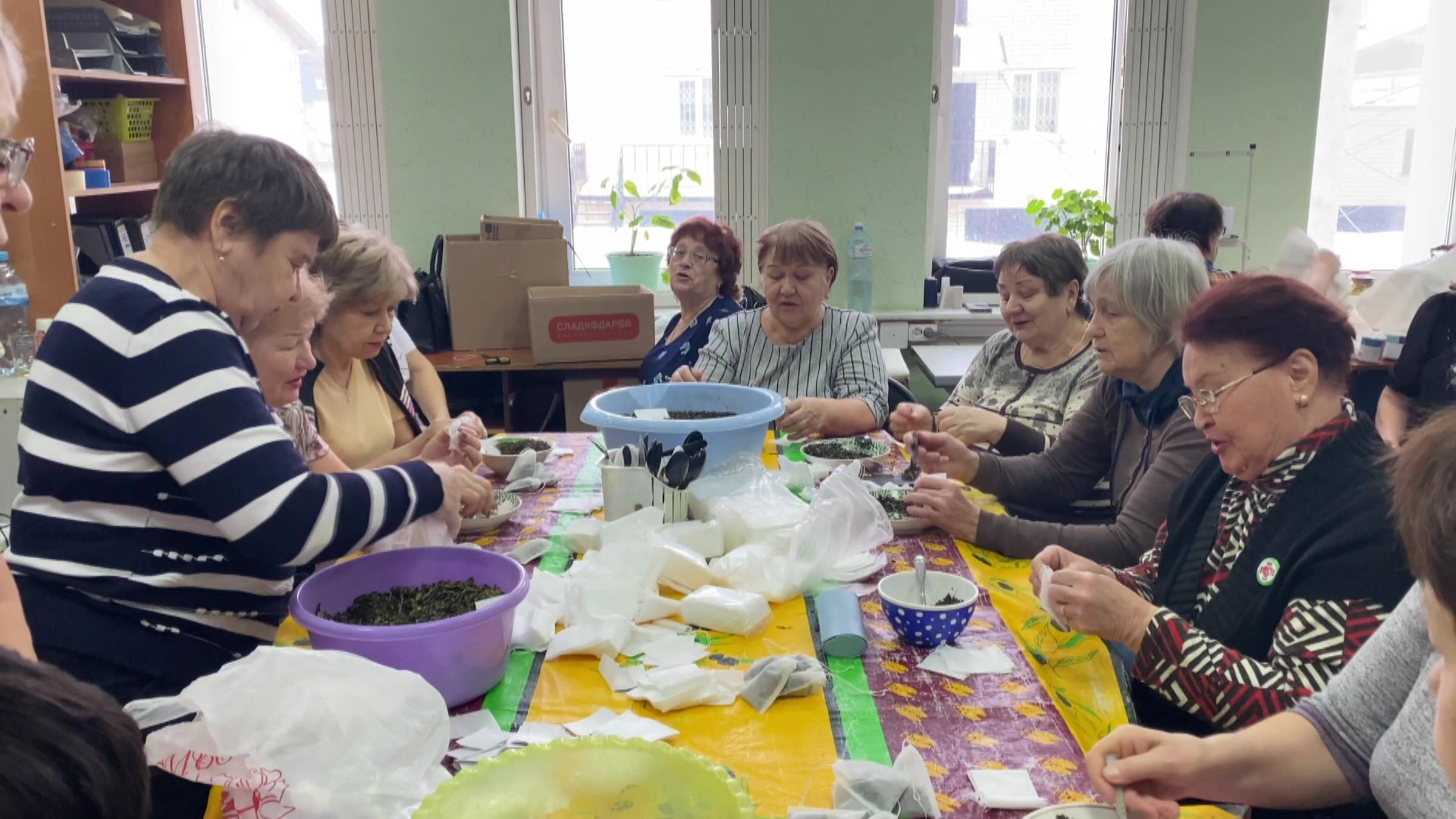Участницы собрались вовсе не наслаждаться этим ароматным напитком, а чтобы заготовить травяной чай для бойцов СВО. На сегодняшний день активистки сделали уже более 30 тысяч пакетиков.