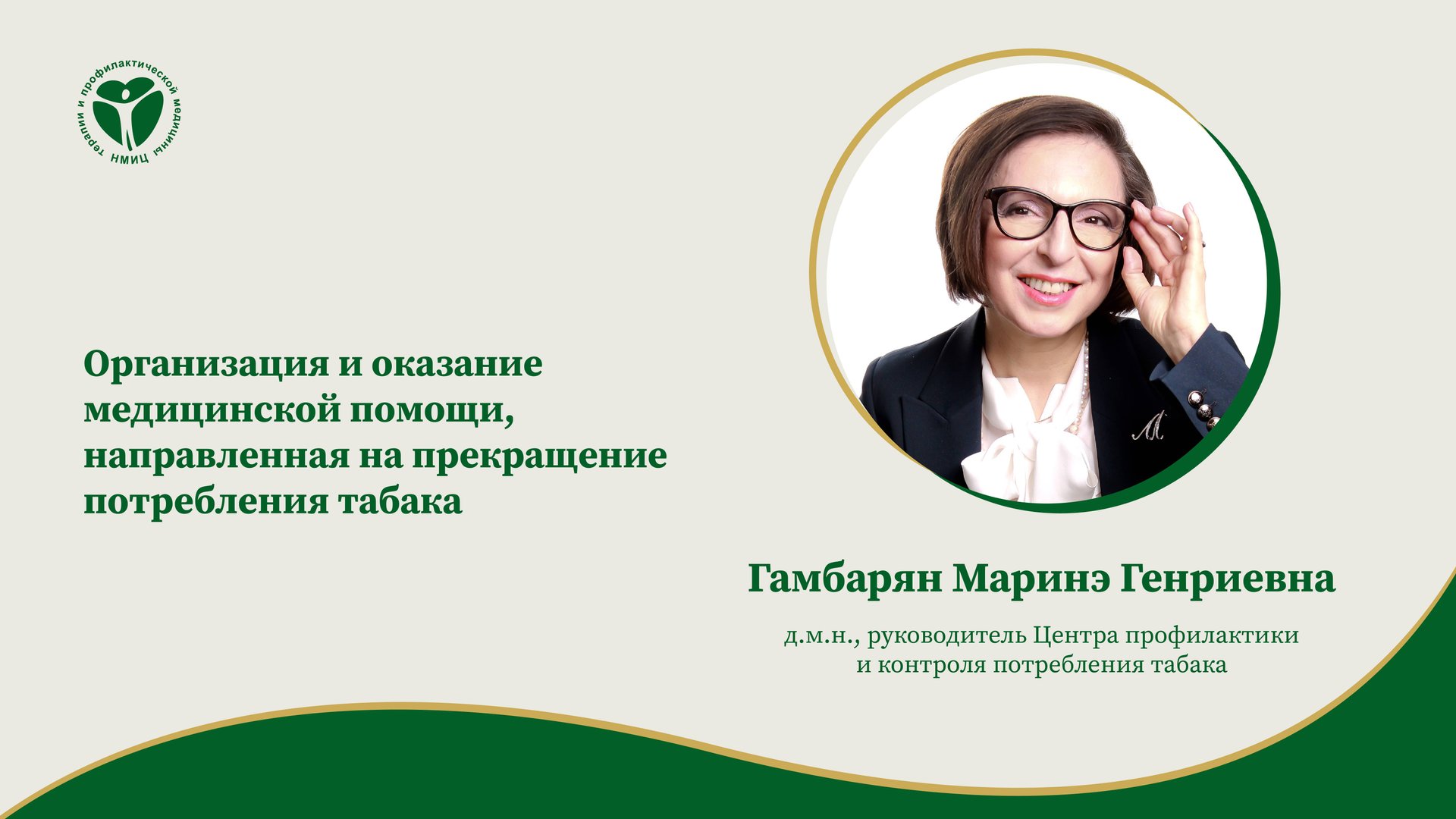 «Организация и оказание медицинской помощи, направленная на прекращение потребления табака», лекция от 03.12.2024. Лектор: Гамбарян Маринэ Генриевна, д.м.н., руководитель Центра профилактики и контроля потребления табака ФГБУ «НМИЦ ТПМ» Минздрава России.