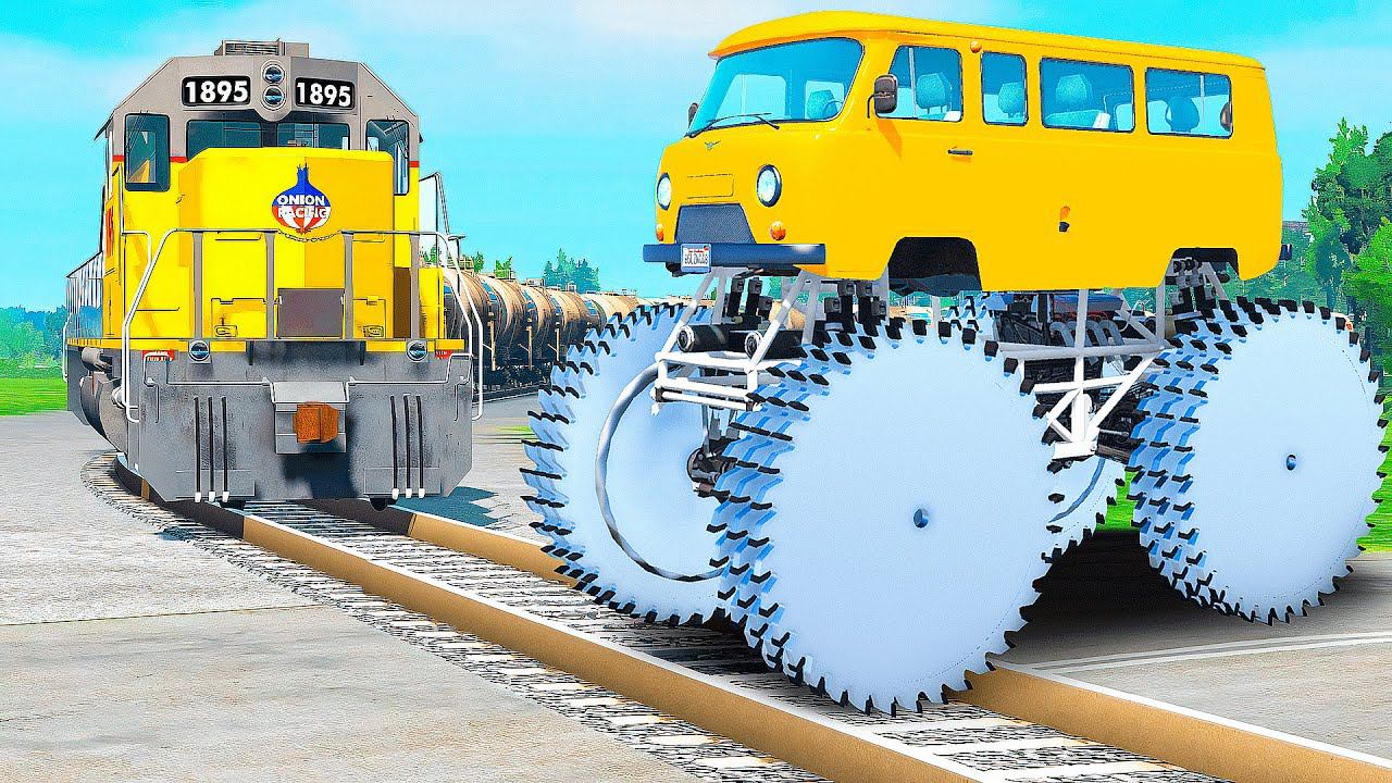 ПРОЕХАЛ РЕЛЬСЫ на ГИГАНТСКОЙ БУХАНКЕ с ПИЛАМИ в ГТА 5 МОДЫ - ЭКСПЕРИМЕНТЫ в GTA 5