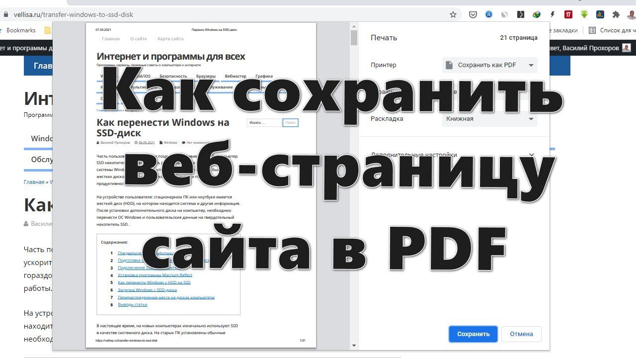 Как сохранить веб страницу сайта в PDF