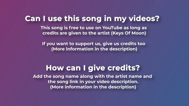Эту песню можно бесплатно использовать на YouTube, но вы должны включить в описание вашего видео следующие авторы (скопировать и вставить): 🔻 "Keys Of Moon - Enchanted" находится под лицензией YouTube для бесплатного использования. лицензия /keyofmoonmusic Музыка предоставлена BreakingCopyright: • 🔮 Эмоциональная фантастическая фортепианная музыка (для... 🔺 Для мобильных устройств легко скопируйте и вставьте текст прямо с нашего сайта: https://breakingcopyright.com/song/ke...